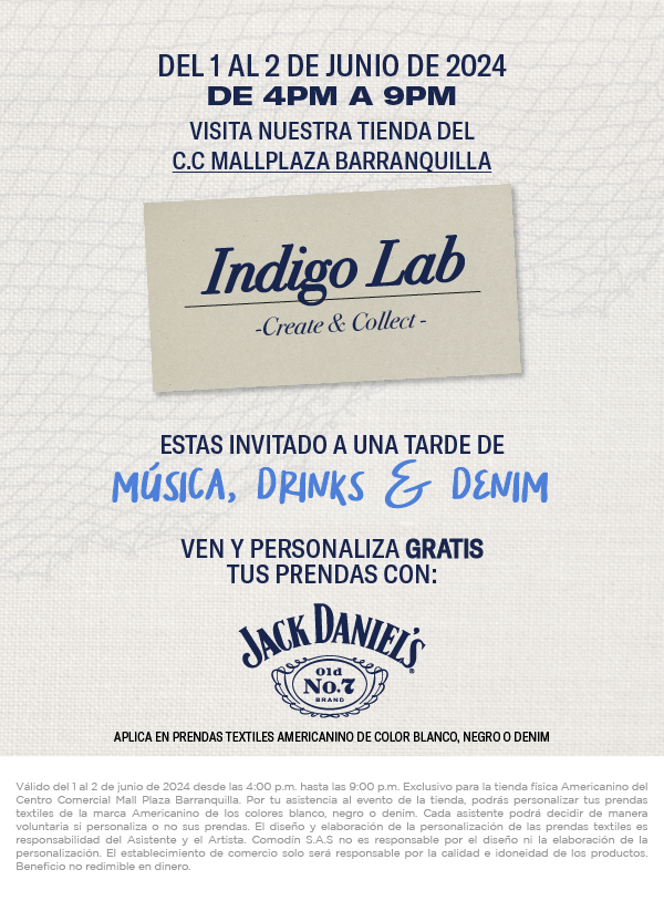 Válido del 03 de febrero al 31 de agosto de 2026. Por la compra de una prenda de cualquier referencia diferente a las referencias de la categoría "JEAN", recibe un bono de $100.000 pesos para redimir en jeans de la marca Americanino para una futura compra. Aplica exclusivamente en la tienda online americanino.com. La redención del bono aplica entre el 03 de febrero al 31 de agosto de 2026 en la tienda online americanino.com, ingresando la palabra clave enviada al correo en el carrito de compras antes de finalizar el pago. Beneficio personal e intransferible, otorgado exclusivamente a los clientes que reciban la comunicación del beneficio por correo electrónico o SMS. Válido un (1) bono por cliente durante toda la vigencia de la estrategia. El bono solo podrá ser redimido en jeans de la marca Americanino. No es acumulable con otras promociones, campañas y/o descuentos vigentes. No es redimible ni canjeable por dinero en efectivo. No aplica para la compra de bonos regalo, calzado, accesorios, gorras ni productos de marcas aliadas. En caso de cambio o garantía, se reconocerá únicamente el valor efectivamente pagado por la(s) prenda(s), conforme a la política de cambios y garantías vigente.