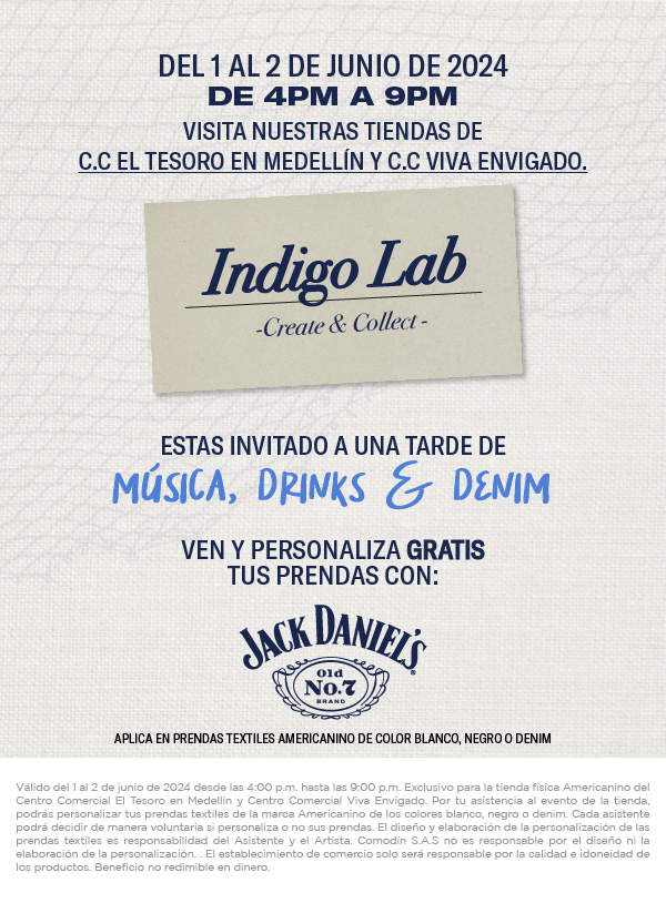 Válido del 03 de febrero al 31 de agosto de 2026. Por la compra de una prenda de cualquier referencia diferente a las referencias de la categoría "JEAN", recibe un bono de $100.000 pesos para redimir en jeans de la marca Americanino para una futura compra. Aplica exclusivamente en la tienda online americanino.com. La redención del bono aplica entre el 03 de febrero al 31 de agosto de 2026 en la tienda online americanino.com, ingresando la palabra clave enviada al correo en el carrito de compras antes de finalizar el pago. Beneficio personal e intransferible, otorgado exclusivamente a los clientes que reciban la comunicación del beneficio por correo electrónico o SMS. Válido un (1) bono por cliente durante toda la vigencia de la estrategia. El bono solo podrá ser redimido en jeans de la marca Americanino. No es acumulable con otras promociones, campañas y/o descuentos vigentes. No es redimible ni canjeable por dinero en efectivo. No aplica para la compra de bonos regalo, calzado, accesorios, gorras ni productos de marcas aliadas. En caso de cambio o garantía, se reconocerá únicamente el valor efectivamente pagado por la(s) prenda(s), conforme a la política de cambios y garantías vigente.